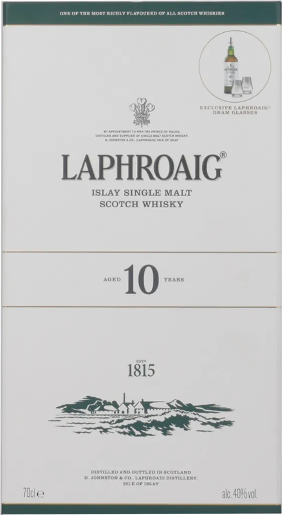 Schreibe die erste Rezension für „Laphroaig 10 Jahre Mit 2 Gläsern Single Malt Scotch Whisky 0,7l, Alc. 40 Vol.-%“ Antwort abbrechen