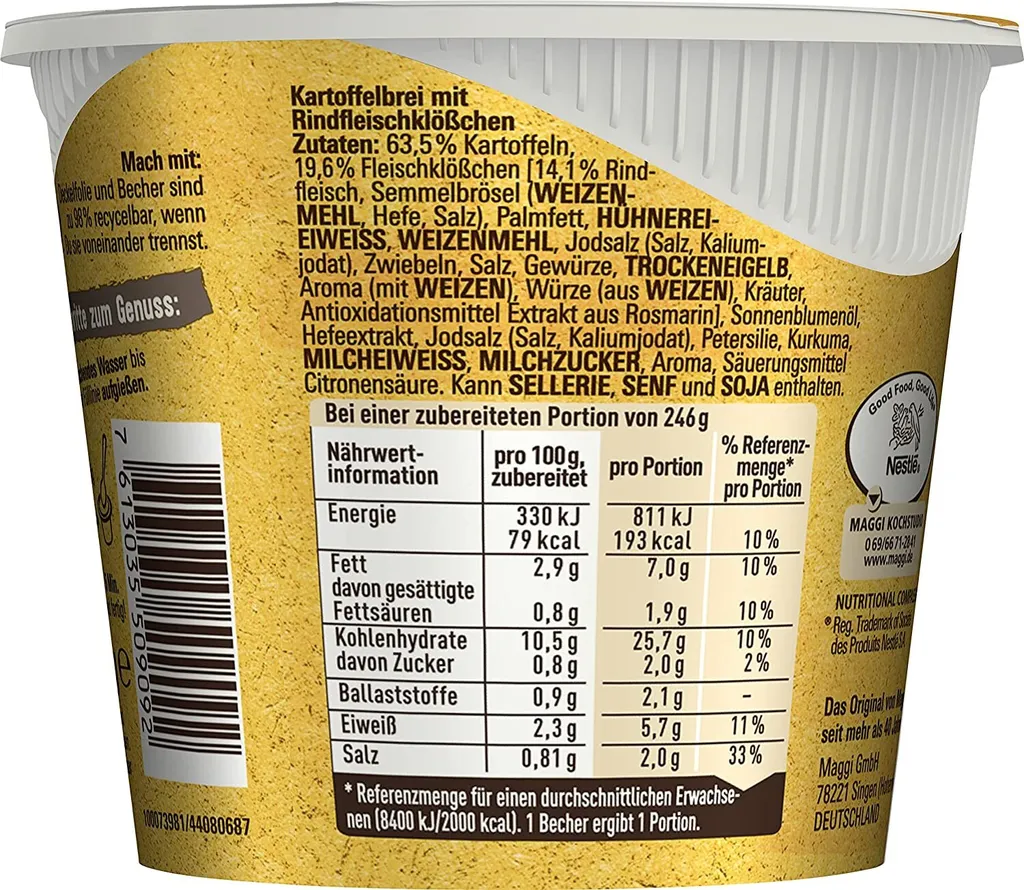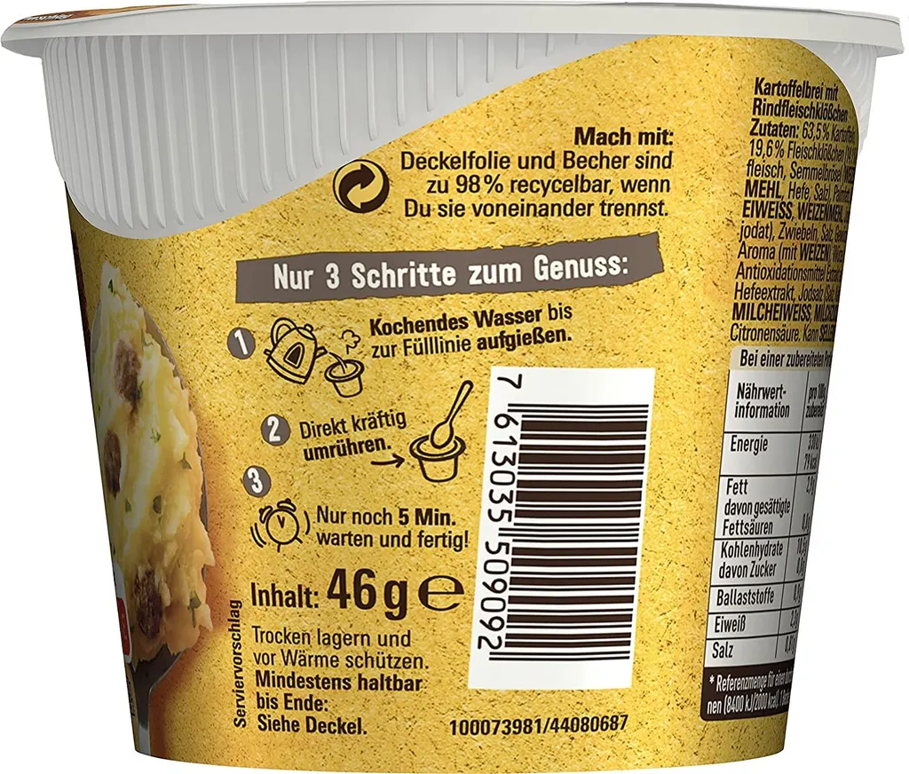 Schreibe die erste Rezension für „Maggi 5 Minuten Terrine Kartoffelbrei Mit Fleischklößchen 46g“ Antwort abbrechen