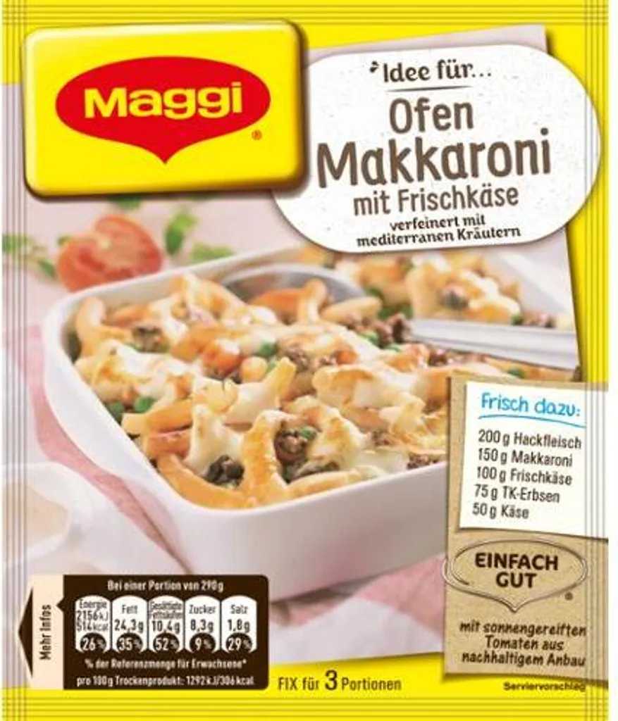 Artikelnummer: A2F1Z 328683220 Kategorien: Fertiggerichte, Fix-Produkte, Haltbare Lebensmittel Schlagwort: Maggi