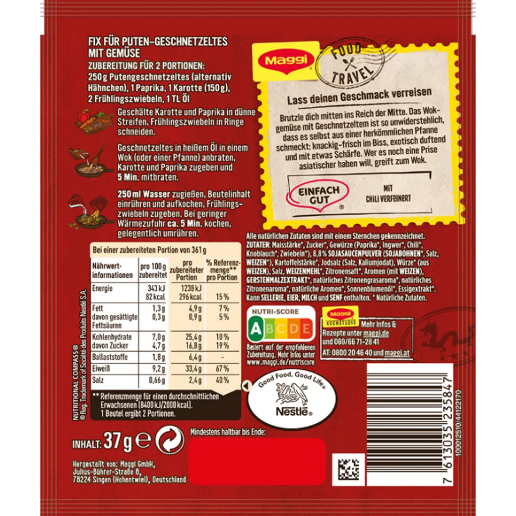 Schreibe die erste Rezension für „Maggi Food Travel Fix Für Puten Wok Geschnetzeltes Asia Pfanne 37g“ Antwort abbrechen