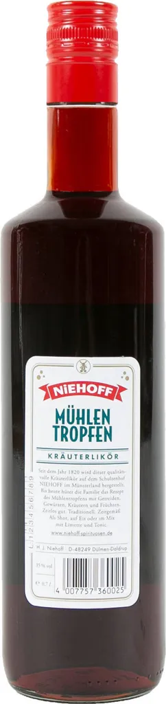 Schreibe die erste Rezension für „MÜHLENTROPFEN Kräuterlikör Von Niehoff 0,7 L Klare Flasche“ Antwort abbrechen